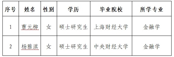 根据工作需要,壹号娱乐-com - NG大舞台,有梦你就来集团财务有限公司(以下简称“公司”)于近期组织开展校园招聘,现将拟录用人选情况公示如下: