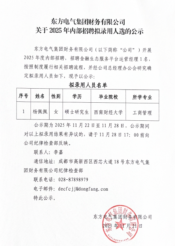 壹号娱乐-com - NG大舞台,有梦你就来集团财务有限公司关于2025年内部招聘拟录用人选的公示